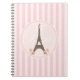 Lovely and super girly baby design featuring a brown Eiffel Tower with a pink ribbon on the top. Sweet pink flowers by the towers base, as well as pink stripes and other delicate ornaments.