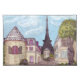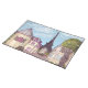 This cityscape painting on this placemat was inspired by Paris, France and Paris Las Vegas' indoor shopping boulevard, featuring the Eiffel Tower, by Kristie Hubler