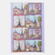 3 Paris cityscapes and the Eiffel Tower, repeated twice, inspired by both the real Paris, France and Paris Las Vegas' retail area. With light periwinkle border. Art created by Kristie Hubler