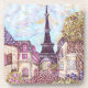 The Paris inspired pointillism on this cork coaster was created by Kristie Hubler, featuring the Eiffel Tower