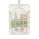Where ever you are, keep Paris close by with this Air Freshener displaying a whimsical, hand painted drawing of a dreamy Paris morning, Eiffel tower in view through a lovely French window, complete with cappuccino and a croissant. Perfect for Francophiles who love France and anything French inspired.