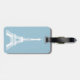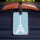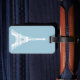 A custom luggage tag featuring the saying "Paris is always a good idea" and on the other side it has a picture of the eiffel tower!