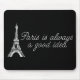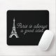 Black and white design illustrated by the famous eiffel tower and written on handwritten stylish font "Paris is always a good idea".