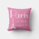 A cute Paris pillow with the saying "Paris is always a good idea" and a picture of the Eiffel tower on a light pink background. Customize the background color to any one of your choice!