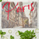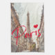 This kitchen towel uses a watercolor sketch painting of the iconic Eiffel Tower as seen through a side street - evoking memories of travels in Paris and French street life! The word “Paris” in bright red with a heart adds a stylish and modern touch - you can easily re-size, delete, change the color of or move this text around if desired.