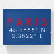 Paris, France longitude and latitude coordinates in distressed fonts .Blue background with red and white text. Great gift idea for those who love to travel or as a hometown memento.