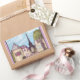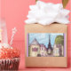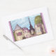 Paris Like Landscape with Eiffel Tower sticker, with lilac pink border, by Kristie Hubler, inspired by Paris, France, and Paris Las Vegas resort shop facades