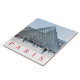 A beautiful photograph of the famous glass pyramid at the entrance to the Louvre Museum in Paris printed on a souvenir ceramic tile.
