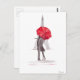 Paris love couple red umbrella watercolor Eiffel Postcard