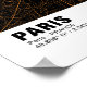 Elevate your decor with our striking Black and Gold Paris Map. This artistic masterpiece beautifully melds the timeless beauty of Paris with opulent accents. The city's iconic streets shine in resplendent gold, creating an enchanting visual journey. Perfect for those who seek to infuse their space with a touch of Parisian grandeur.