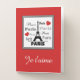 Paris text design illustration with Eiffel Tower and red hearts decoration in black and white squares on red background