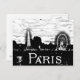 Black and White Postcard of Paris skyline with Ferris Wheel and Eiffel Tower