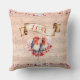 Paris Postmark Love Birds with Whimsical Notes Throw Pillow