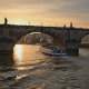 A romantic cityscape capturing the Seine River at sunset, blending warm tones with architectural beauty. This piece adds a timeless and elegant atmosphere to any space, perfect for lovers of travel and classic European scenes.