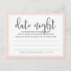 Let bridal shower guests share their favorite date night ideas for the happy couple, with these sweet cards. Chic pastel blush pink and black design features "date night" in modern calligraphy script lettering and a short poem instructing guests what to do. Customize with the bride's name and date of shower, and place a stack at the entrance to the event, pass them around, or leave one at each place setting. Cards reverse to our romantic and whimsical Paris Romance pattern, coordinating beautifully with our matching invitations and accessories. Makes a lovely keepsake for the bride, and a great alternative to the date night jar!