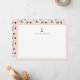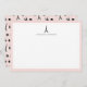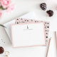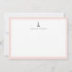 Our chic Parisian inspired personalized stationery flat cards feature a pastel blush pink border, a tiny black Eiffel tower illustration, and your name, monogram or choice of personalization. Cards reverse to our Paris Romance pattern, with tiny birds, croissants, macarons, roses, coffee cups, and the Eiffel tower on a pale blush pink background.