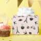 Add Parisian flair to all your gifts with our chic Paris patterned wrapping paper in blush pink and crisp black. Design features tiny birds, croissants, macarons, roses, coffee cups, and of course, the Eiffel tower, in black and white on a pale blush background, for a sweet and whimsical take on the timeless city.