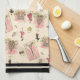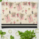 16” x 24” kitchen towel with an image of pink, black and gold chic ladies and the prominent landmarks in Paris on beige. There’s the L’arc de Triumphe, the Eiffel Tower and the beautiful Basilica of the Sacré Cœur on the summit of Montmartre. Black stripe borders.