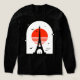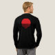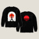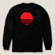 Minimalist image with Eiffel Tower silhouette against bright red sun, surrounded by flying birds and peaceful sky, nose feels romantic and artistic.