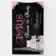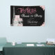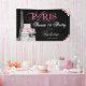 Paris sweet 16 birthday party banner with pretty pink Paris script on a pink and black floral, gifts and high heel shoes and Eiffel Tower background. You can add the text of your choice and change the background color.
