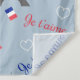 Seamless Paris text design illustration with Eiffel Tower, tricolor heart shapes and French flag decoration on blue background for Valentine's Day