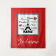 Paris text design illustration with Eiffel Tower and red hearts decoration in black and white squares on red background