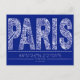 Modern postcard featuring bold “Paris” typography filled with the city map on the front. The back includes a detailed Paris map, writing space, and stamp area on a warm yellow-toned background. A refined travel-inspired design blending typography, cartography, and modern aesthetics.