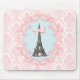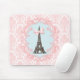 This design is inspired by Paris, city of fashion and light! It features the famous eiffel tower in vintage illustration style, where a light pink ribbon graciously lays on the top to add a girly touch. The background is made of light blue and white polka dots and pink and white damask. Finally, it is framed by a vintage style frame in pink swirls.