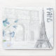 Beautiful vintage Paris with the Eiffel Tower and a bunch of soothing blue flowers.