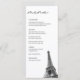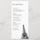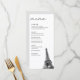 Modern Eiffel Tower black and white wedding reception menu with the option to fully customize all titles and text. Enter the Zazzle editor for additional design customizations.