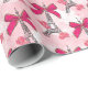 A Pink Valentines Day Wrapping Paper Design With The Paris Eiffel Tower Tied In A Bow