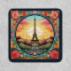 Bright Parisian Sunset Eiffel Tower Paris French France Floral Patches features an art deco style Paris sunset with the Eiffel Tower in a bold floral frame. Created by Evco Studio www.zazzle.com/store/evcostudio