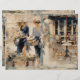Parisienne Street Market Cafe Junk Journal Page With different artwork on each side, depicting Paris lifestyle, with women and flowers, cafe and street scenes. With a vintage feel. For your junk journaling and scrapbooking projects.