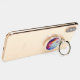The piece to peel off is on the entire back of the grip when received, though it's not super easy to tell, just lift carefully with a fingernail end and peel off. The grip sticks well to the phone, is very stable and immobile once adhered. Know exactly where you want it before pressing it on. The printing was fine, colours were quite true to what I saw on my personal screen. Fine small lines turned out well. The artist's Mandala design is gorgeous.