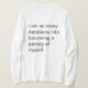 I love this shirt. I had written to the artist asking her if this picture was available on a shirt, and she wrote me back telling me where I could find the shirt. These shirts can be custom made to have a different saying. I loved this saying and went with it. The artist wrote me back later to tell me that she had seen my order go through. How's that for service? Pretty special. It's just as displayed. Perfect!