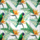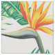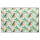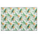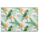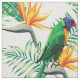 Cute colorful parrot and exotic yellow flowers over white background. Customizable fabric template