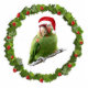 This Christmas ornament features a cherry headed conure parrot in a Santa hat sitting inside a Christmas wreath