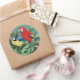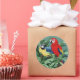 Two macaws on round stickers.