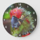 Parrot wall clocks with colorful photo of a parrot Macaw on the clock face in this nature wall decor clock design for your kitchen, bathroom, or any room in your house you want to add some tropical decoration.