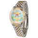The watch is very nice, the picture is great and the watch looks like quality. The only problem I am having with it is that it is a little too large, and I also can't figure out how to open the clasp. No directions came with it. Very good. The printing is perfect and the watch keeps good time.