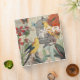 This image of yellow parrots and flowers is a beautiful modern collage of several antique painting prints of birds, flowers, and birdcages.