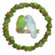 This Christmas ornament features a pair of parrotlets inside a Christmas wreath