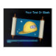 A humorous, allegorical rendering of "Bereshit" (In the beginning), Genesis 1:1, the first Torah portion, or parsha. A blueprint of the Universe, depicted as a Torah scroll and a yellow construction hardhat, or helmet superimposed on a starry background. The logo of the Yesh M'ayn (Something From Nothing) Construction Company," with English text reading, "Established in the beginning," appears on the side of the helmet. The text of Genesis 1:1, In the beginning G-d created the heavens and the earth" also appears. You may add your own additional text.