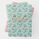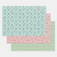These cute Jack Russell themed wrapping paper sheets feature three unique JRT / PRT patterns, all with customizable background colors, currently pastel blue, pink and green - by katz_d_zynes
