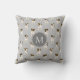 Choose any background color for this Parson / Jack Russell Terriers pattern throw pillow that features eight whimsically illustrated "Jacks" with varying head and body markings in brown and black, each with a charming doggy head tilt - customize with a monogram, and choose any color background, shown here in light gray - Jack Russell Terriers pattern design © katz_d_zynes 2019