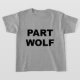 Customizable. Has 'part wolf' written in black letters. Perfect for someone with a wild side and a sense of humor.