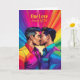 If you share your life with a man you adore and want a special LGBTQ themed anniversary card, this rainbow themed choice features two men kissing.