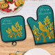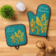 Partridge In A Pear Tree Teal Gold Merry Christmas Oven Mitt & Pot Holder Set