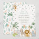 Celebrate your little one’s special day with this adorable Safari Animals Fiesta birthday invitation! Featuring playful watercolor jungle animals like a lion, giraffe, zebra, elephant, and monkey, this invitation is perfect for a safari- or zoo-themed party. Personalize with your child’s name, age, and party details for a fun and memorable celebration. Ideal for first birthdays, boys and girls, or any animal-themed event.