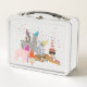 This is a standard metal lunchbox that appears to work just fine. We designed this box ourselves with an uploaded photo and custom text on the front and back. It looks absolutely beautiful except the front of the lunchbox is not centered like it shows in the photo. The print borders don't align with the inset flat part of the box where the preview photo online showed it perfectly centered in there. The back looks nice and centered though.